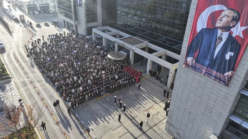 Ardından saat 09.05'te sirene eşlik eden saygı duruşu ve İstiklal Marşı ile anma gerçekleştirildi. Bayrakların yarıya indirildiği törende, çalışanlar Atatürk büstüne kırmızı karanfiller bırakarak Atatürk'e olan saygı, minnet ve özlemlerini bir kez daha ifade etti.