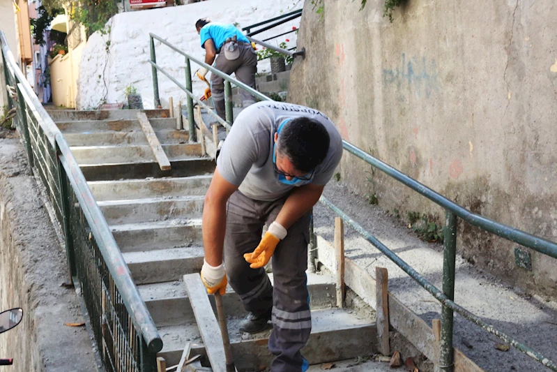 Ekipler, Kahraman Sokak ve Itri Mustafa Sokak’ın girişindeki çöken merdivenleri tamamen yenileyerek güvenli ve kullanışlı hale getirdi.