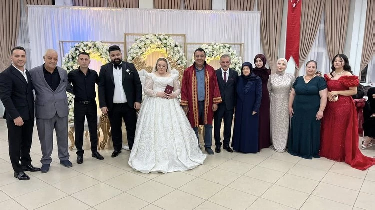 BAŞKANIMIZ, HAMİDE ÜÇEL VE MUHAMMED BULUT ÇİFTİNİN DÜĞÜN TÖRENLERİNDE NİKAH AKİTLERİNİ GERÇEKLEŞTİRDİ