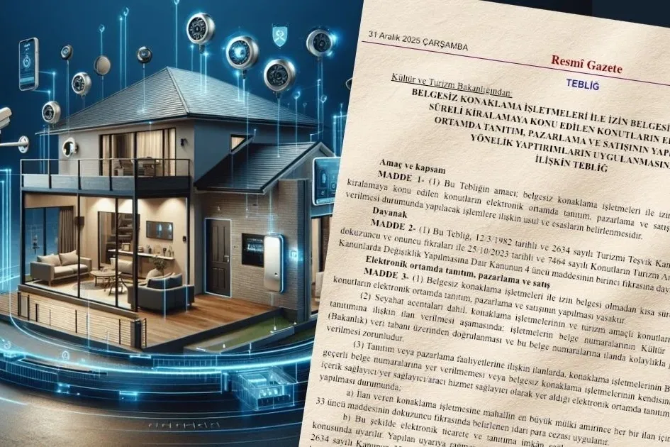 Kültür ve Turizm Bakanlığı’nın Resmi Gazete’de yayımlanan tebliğiyle, belgesiz konaklama işletmeleri ile izin belgesi olmayan kısa süreli kiralamaların internet üzerinden tanıtım ve satışına yaptırım getirildi.