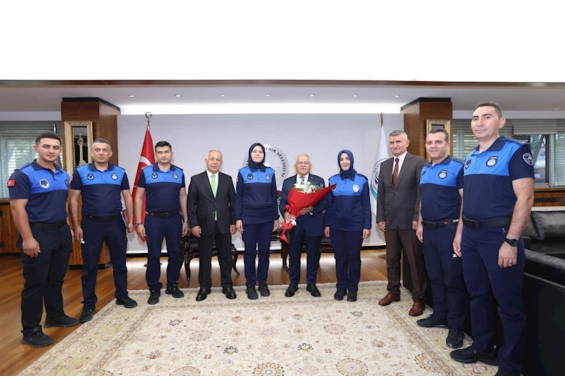 Büyükşehir Belediye Başkanı Dr. Memduh Büyükkılıç, kentte sağlıklı, düzenli ve güvenli bir yaşam için denetim ve kontrol faaliyetlerini gerçekleştiren Büyükşehir Belediyesi Zabıta personelini makamında kabul etti.
