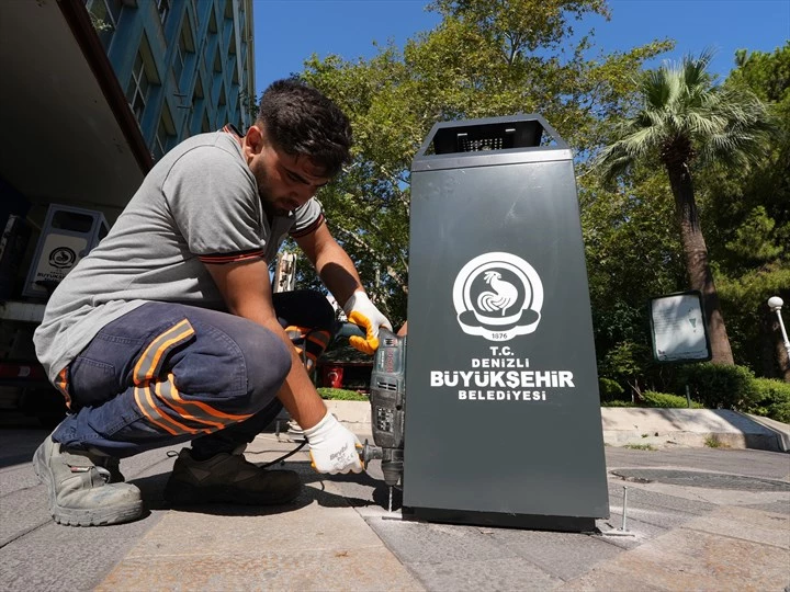 Denizli Büyükşehir Belediyesi, yan kapakları kırılan, küllükleri olmayan ve açık renkleri nedeniyle kiri kolayca gösteren eski çöp kutularını daha büyük hazneli, koyu renkli ve dayanıklı yeni modellerle değiştirerek ana caddelere monte etmeye başladı.