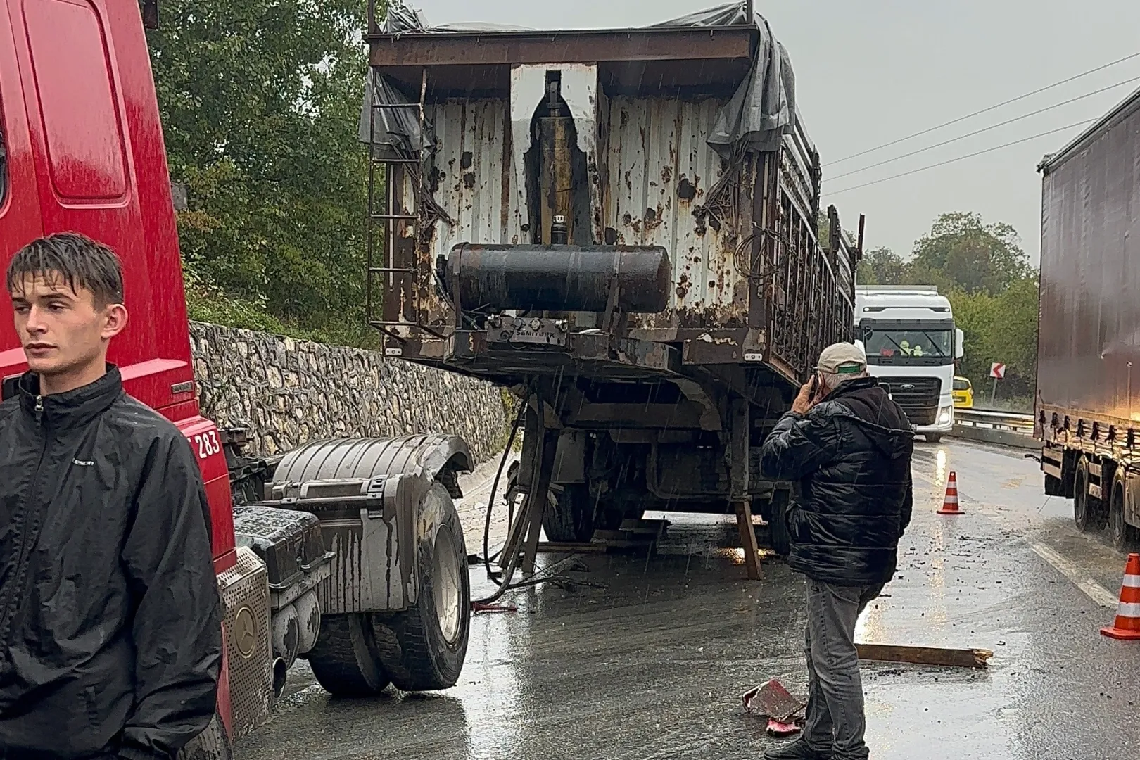 D-655 Düzce-Zonguldak bağlantı yolunun Şifalı Su mevkisinde meydana gelen kazada, 81 ACH 644 plakalı tır sürücüsünün direksiyon hâkimiyetini kaybetmesi sonucu bariyerlere çarptı.