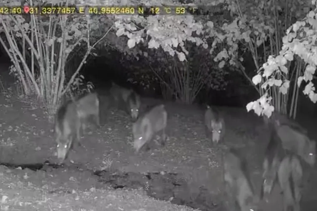 Düzce’nin Yığılca ilçesine bağlı İğneler köyünde, fındık hasadının ardından boşalan köyde yaban hayvanları evlerin bahçelerine kadar indi. Güvenlik kameralarına yansıyan görüntüler, domuz sürüsü ve bir ayının evlerin yakınlarında yiyecek aradığını gösterdi.