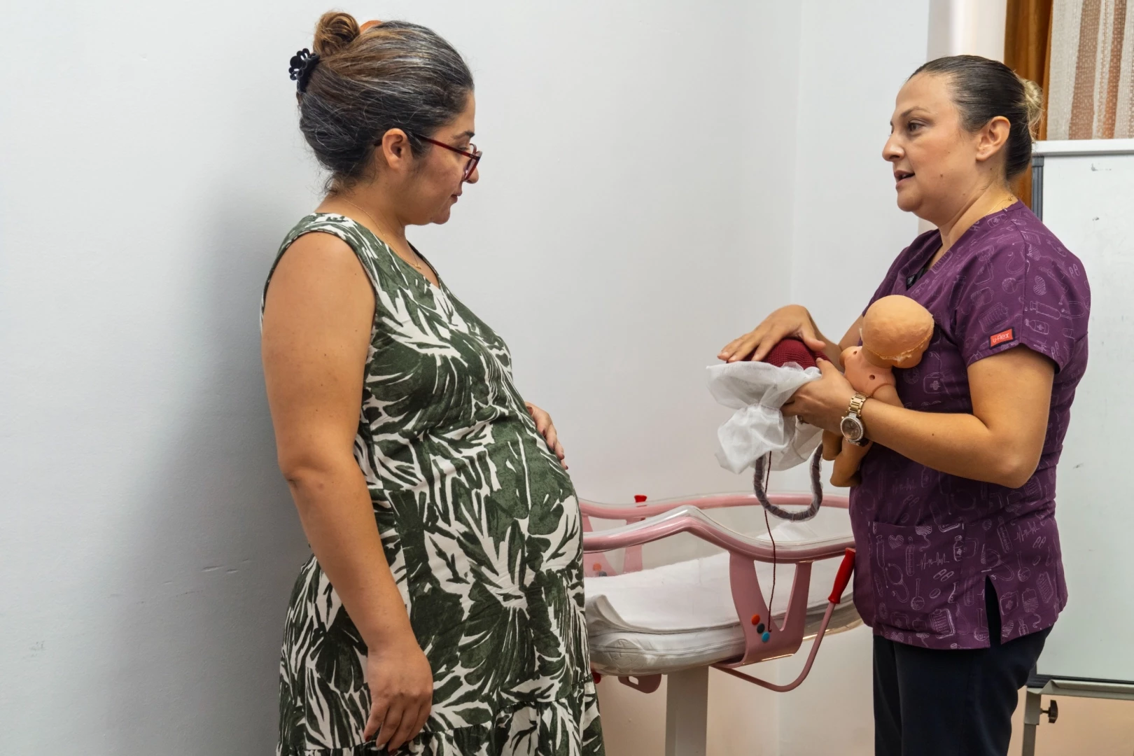 Gebe Okulu’nda koordinatör ebe olarak görev yapan Elif Yalçın da “Gebe Okulu’nda gebelere psikologlarımızla psikolojik destek veriyoruz. Diyetisyen eşliğinde hangi besinleri tüketip tüketmemesi gerektiği ile ilgili bilgi veriyoruz. Pilates, yoga, doğum egzersizi, bebek bakımı, emzirme, bebek banyosu gibi konularda eğitimler veriyoruz. Gebeliğin oluşumundan lohusalık ve emzirmeye kadar olan bütün eğitim içeriklerinin yanı sıra doğum esnasında neler yaşanıldığı gibi konularda da bilgilendirmede bulunuyoruz. Hastalarımız doğumdan sonra da emzirme gibi eğitimleri almak için başvurabiliyor. Sadece doğum yapana kadar olan süreçte değil, doğumdan sonra da lohusa hastalarımızı takip edebiliyoruz. 3 haftalık eğitimin ardından katılım belgelerini gebelere takdim ediyoruz. Eğitimlere baba adayları da katılabiliyor. Çünkü bu süreçte eşe destek çok önemli” diye konuştu.