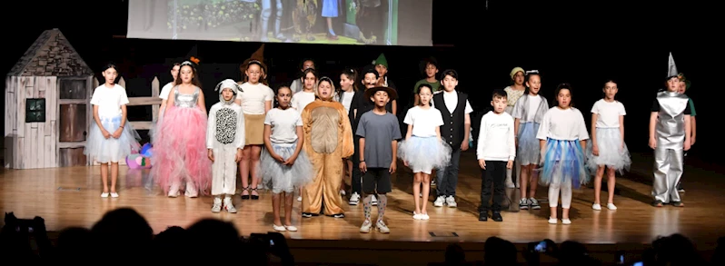 Çiftlik kızı Dorothy ve köpeği Toto'nun kaybolduğu büyülü dünyada tanıştığı, içi saman dolu Korkuluk, duygusal Teneke Adam ve korkak Aslan'la çıktıkları macera dolu yolculuğu konu alan oyunda, öğrencilerin sergiledikleri başarılı performans alkış aldı.