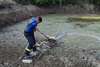 Denizli Büyükşehir Belediyesi İtfaiye ekipleri, Güney ilçesi Koparan Mahallesi’nde gölete düşerek balçığa saplanan bir kuzuyu zorlu bir operasyonla kurtardı. Araç giremeyen bölgeye ulaşmak için taş döşeyerek yol açan ekipler, hayvanı sağ salim sahibine teslim etti.