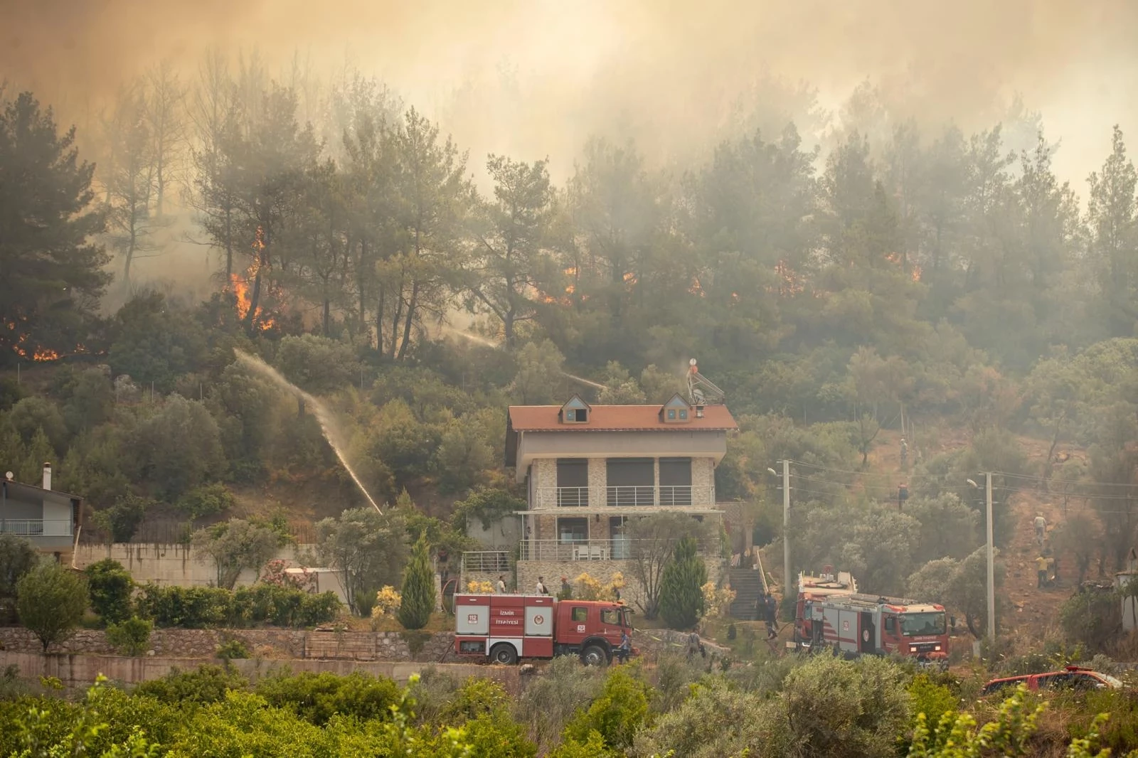 İzmir’de son iki günde çıkan 9 orman yangınının 8’i insan kaynaklı; Büyükşehir Belediyesi, tüm birimleriyle sahada mücadele ederken, 160’a yakın ev hasar gördü, vatandaşlar tahliye edildi.