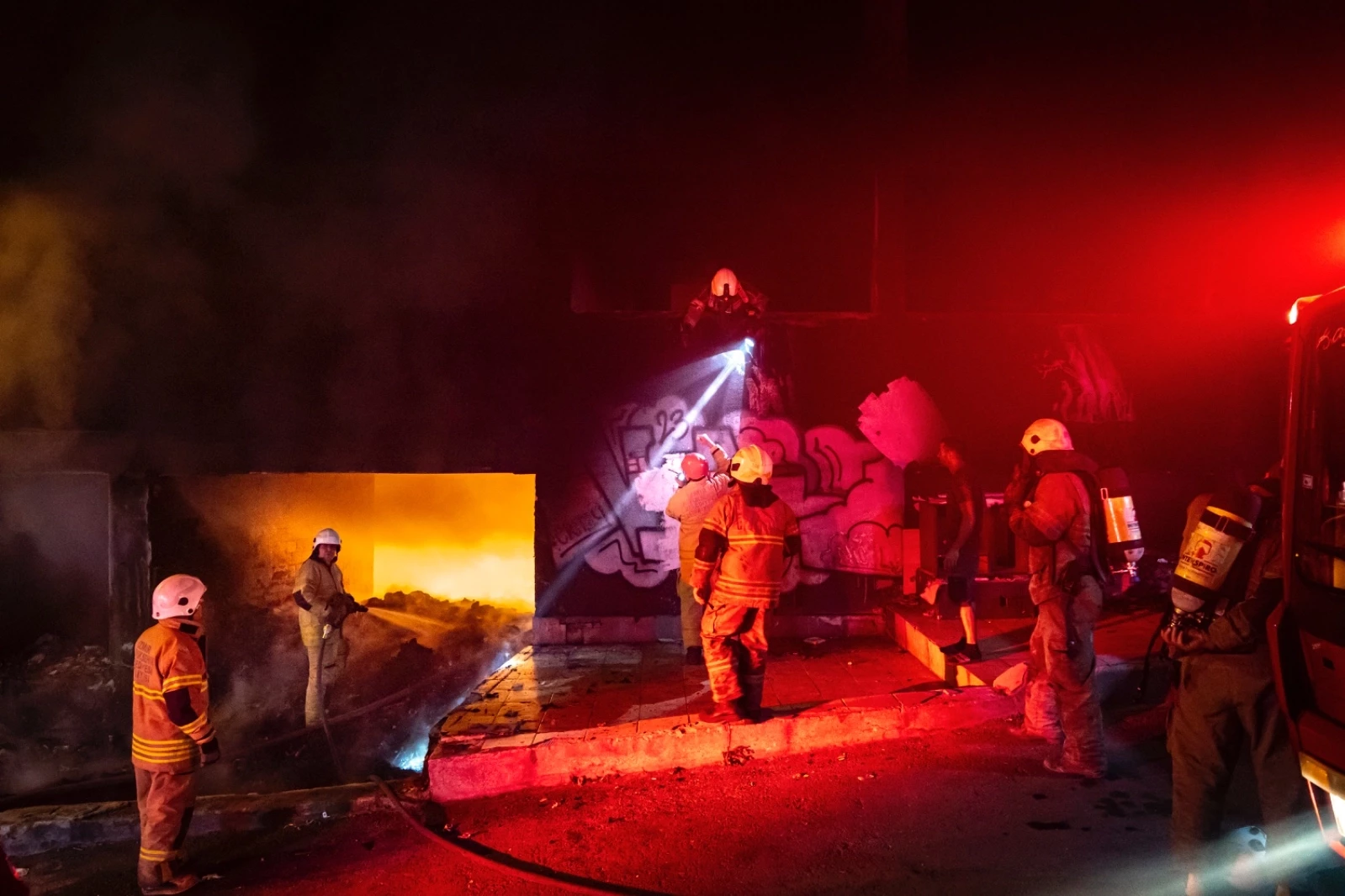 İhbar üzerine olay yerine 3 arazöz, 1 merdivenli araç, 1 tonaj araç ve 1 AKS araç ile sevk edilen İzmir Büyükşehir Belediyesi İtfaiye Dairesi Başkanlığı ekipleri, binada bulunan 2 vatandaşı bulunduğu yerden kurtararak güvenli bölgeye aldı.