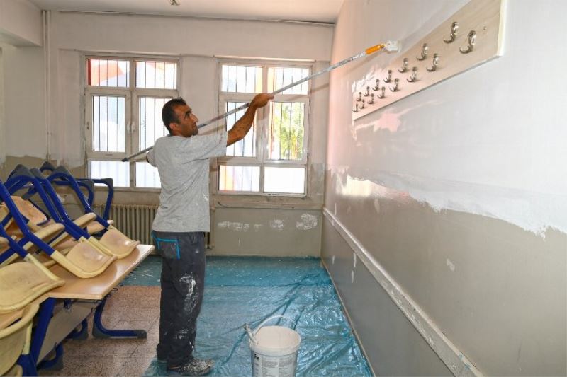Çalışmalar, 12 Eylül'de başlayacak yeni eğitim öğretim dönemi öncesi aralıksız devam ediyor. Öğrencilerin daha sağlıklı koşullarda eğitim görmesini hedefleyen Karabağlar Belediyesi, okulların iç duvar boyamalarının yanı sıra bahçe temizliklerini de yapıyor. Bahçelerde bulunan spor ve oyun alanları çizgileri de yenileniyor.