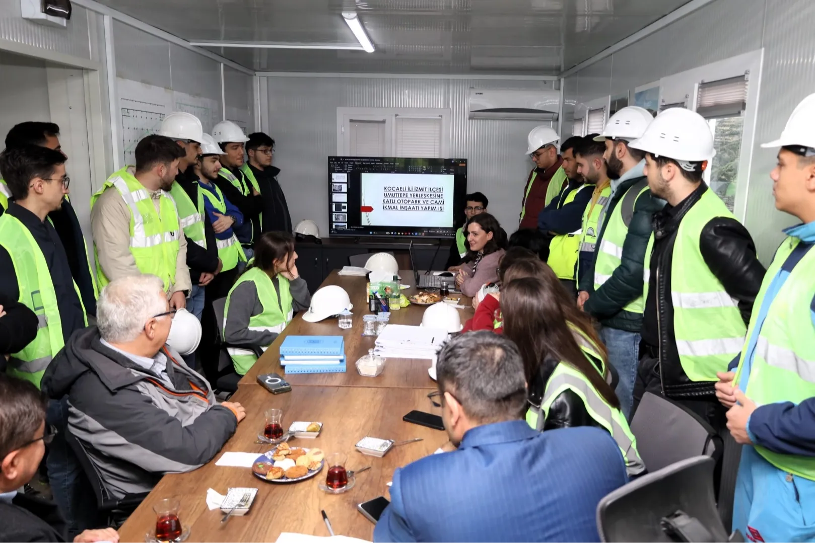 KOCAELİ (İGFA) - Kocaeli Üniversitesi İnşaat Mühendisliği öğrencileri, Kocaeli Büyükşehir Belediyesi’nin Umuttepe Kampüsüne kazandıracağı cami ve otopark projesini teknik gezi kapsamında inceledi. Büyükşehir Belediyesi Fen İşleri Dairesi Başkanlığı’na bağlı teknik personeller tarafından proje hakkında detaylı bilgilendirilen öğrenciler, proje hakkında sorularını da Büyükşehir personellerine yöneltti. Gezi öncesi şantiye alanındaki toplantı salonunda öğrencilere proje hakkında detaylı sunum yapıldı.