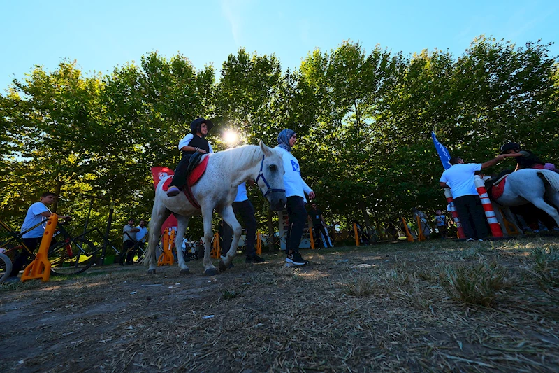 Üç gün sürecek etkinlikte, çocuklar özel olarak hazırlanan alanda pony cinsi atlarla buluşma fırsatı yakaladı. Diğer at ırklarına göre daha küçük yapılarıyla dikkat çeken sevimli pony atlara binen çocukların heyecanı ve mutluluğu yüzlerinden okundu.