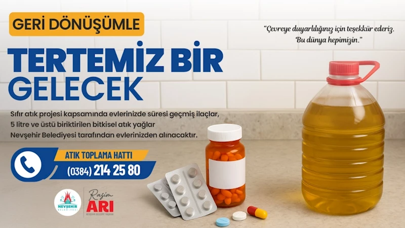 Sıfır atık projesi kapsamında evlerinizde süresi geçmiş ilaçlar, 5 litre ve üzeri biriktirilen atık yağlar Nevşehir Belediyesi görevlileri tarafından evlerinizden alınıyor.