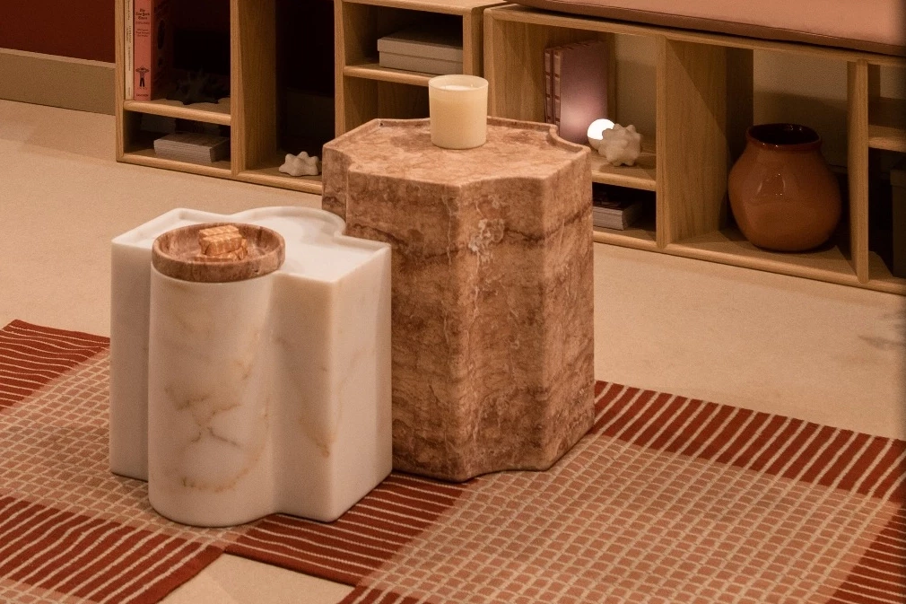 Desen, Akdeniz motiflerinden ve geleneksel mermer desenlerinden ilham alan çağdaş bir sehpa koleksiyonu olarak öne çıkıyor. Modüler yapısı ve özgün form diliyle dikkat çeken koleksiyon, 8–13 Nisan 2025 tarihleri arasında Milano tasarım haftası süresince Salone del Mobile fuar alanının içerisindeki SaloneSatellite’de sergilendi. Üç parçadan oluşan sehpa seti; Burdur Bej, Kırmızı Traverten ve Afyon Beyaz Mermer gibi yerli taşlar kullanılarak, Efesus Stone’un modern üretim tesislerinde tamamen masif bloklardan üretildi.